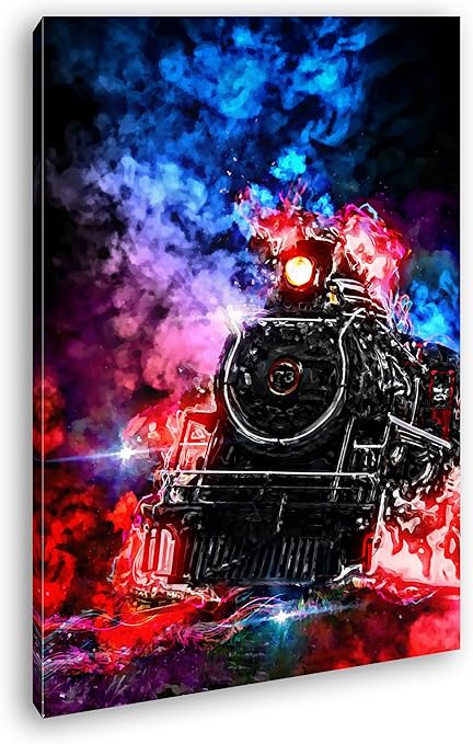 Deyoli Locomotive A Vapeur Coloree Effet Peinture Sur Toile Avec Cadre En Bois Veritable Impression Numerique De Haute Qualite Avec Cadre Pas De Poster Ou Affiche 60x40 Amazon Fr Cuisine Maison