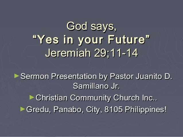 Jeremiah Pulpit Commentary Homiletics Thoughts Of Peace Jeremiah 2911 J Waite Such is the consoling word that God sends to his "banished ones" in their affliction He bids his servant "speak comfortably" to them, even now that their "warfare" is only beginning, and they are having their first taste of the bitterness of exile. 11 For I know the plans I have for you, declares the Lord, plans for welfare and not for evil, () to give you a future and a hope 12 Then you will call upon me and come and pray to me, () and I will hear you 13 You will seek me and find me, when you seek me () with all your heart 14 I will be found by you, declares the Lord, () and I will restore your fortunes and () gather you from all. 11 For I know the plans I have for you,” declares the Lord, “plans to prosper you and not to harm you, plans to give you hope and a future 12 Then you will call on me and come and pray to me, and I will listen to you 13 You will seek me and find me when you seek me with all your heart 14 I will be found by you,” declares the Lord, “and will bring you back from captivity.