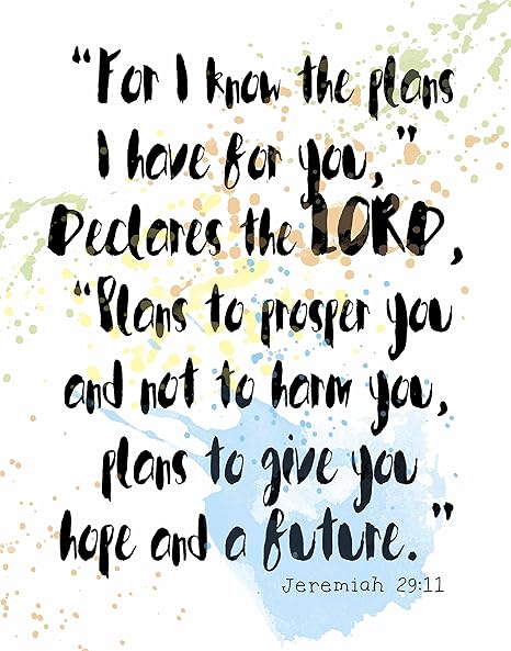 Jeremiah New Revised Standard Version (NRSV) 11 For surely I know the plans I have for you, says the Lord, plans for your welfare and not for harm, to give you a future with hope 12 Then when you call upon me and come and pray to me, I will hear you. The key text is Jeremiah , especially verse 11 You can find the whole sermon here) Scripture — Jeremiah 2911 “For I know the plans I have for you,” declares the Lord, “plans to prosper you and not to harm you, plans to give you hope and a future”. Jeremiah For I know the plans I have for you, says the LORD, plans for welfare and not for evil, to give you a future and a hope Then you will call upon me and come and pray to me, and I will hear you Read verse in Revised Standard Version.