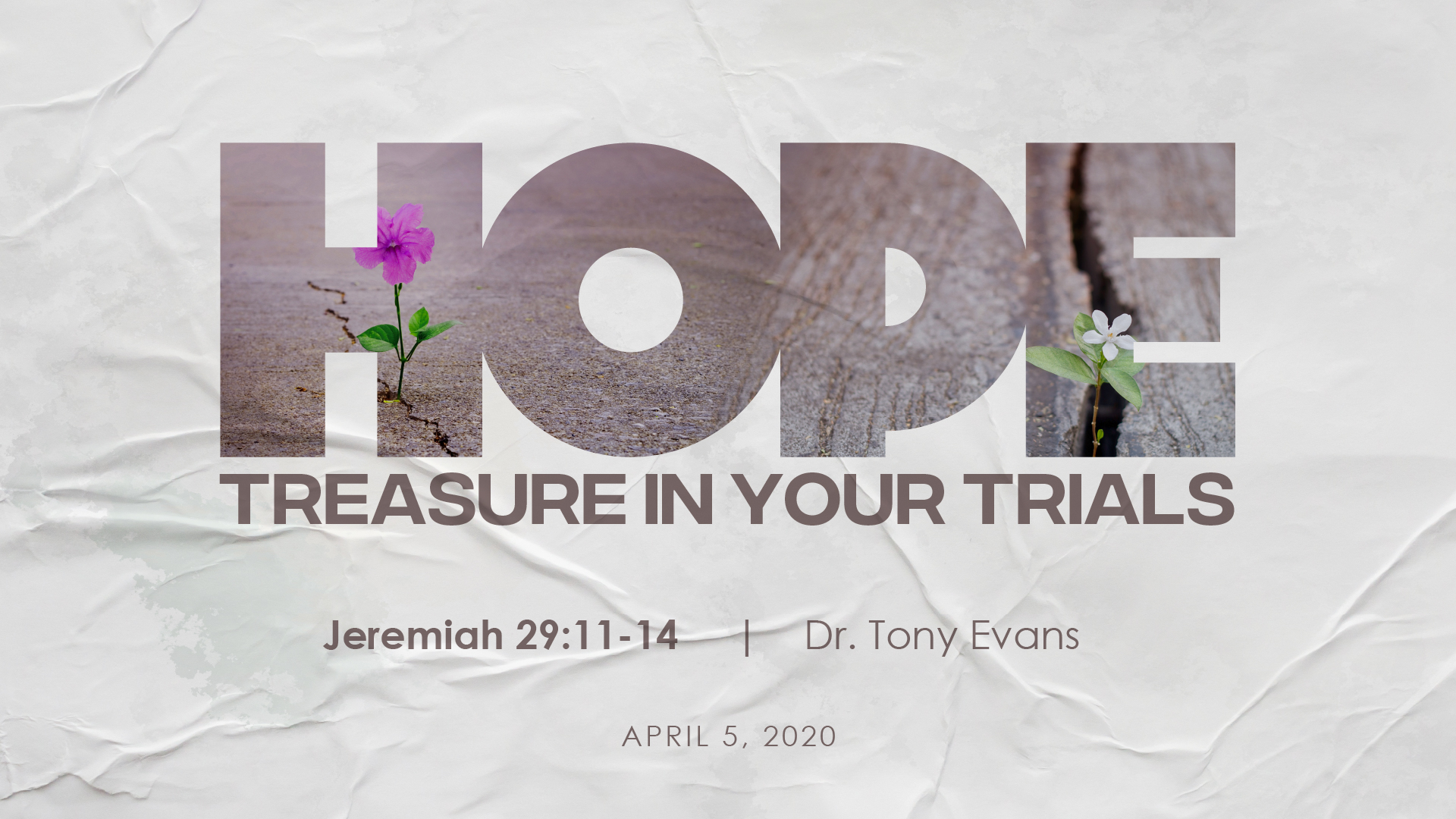 Text Jeremiah For I know the thoughts that I think toward you, saith the LORD, thoughts of peace, and not of evil, to give you an expected end (a future and a hope) NKJV Then shall ye call upon Me, and ye shall go and pray unto Me, and I will hearken unto you. 11 For I know the plans I have for you,” declares the Lord, “plans to prosper you and not to harm you, plans to give you hope and a future 12 Then you will call on me and come and pray to me, and I will listen to you 13 You will seek me and find me when you seek me with all your heart 14 I will be found by you,” declares the Lord, “and will bring you back from captivity. "For I know the plans that I have for you", says the Lord "Plans to prosper you and not to harm you, plans to give you hope and a future" We all have had our ups and downs in life We have had our fair share of trials as well as happy moments But none of these.