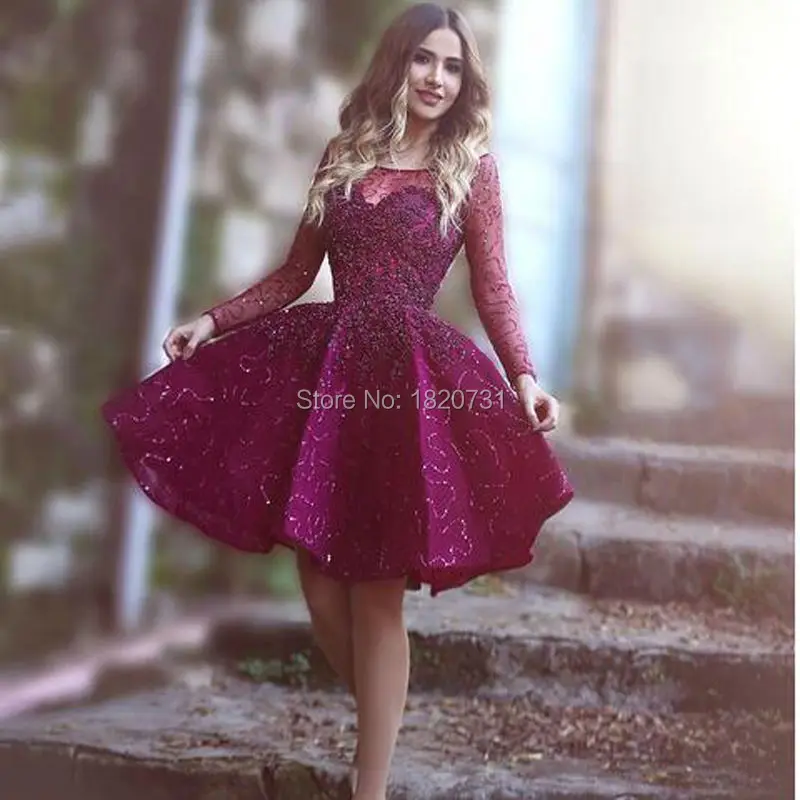 Robe De Cocktail Et De Remise Des Diplomes Robe De Soiree De Luxe Paillettes Scintillantes Perles Couleur Prune Fonce Manches Longues Violet Aliexpress