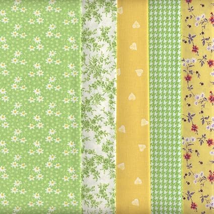 Textiles Francais Lot De 5 Coupons De Tissus Assortis 100 Coton Vert Jaune Amazon Fr Cuisine Maison