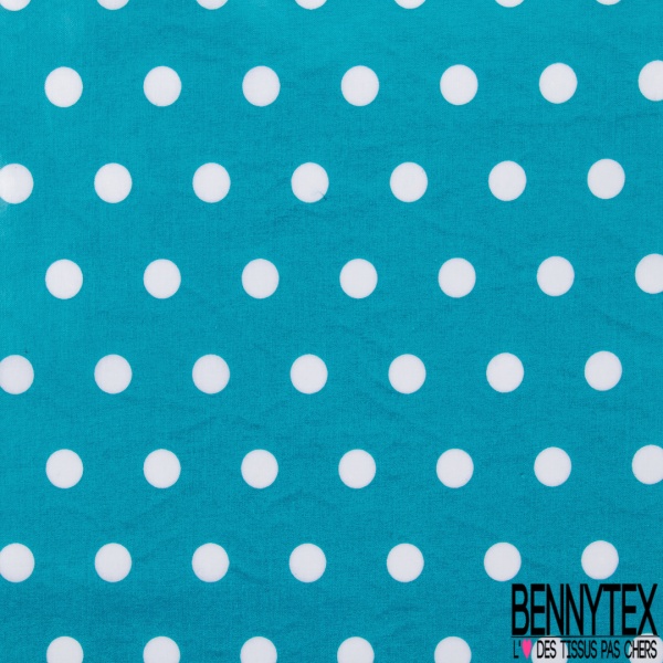 Coton Enduit Cire Impression Pois Blanc Fond Bleu Turquoise Profond Bennytex Vente De Tissus Pas Cher Au Metre