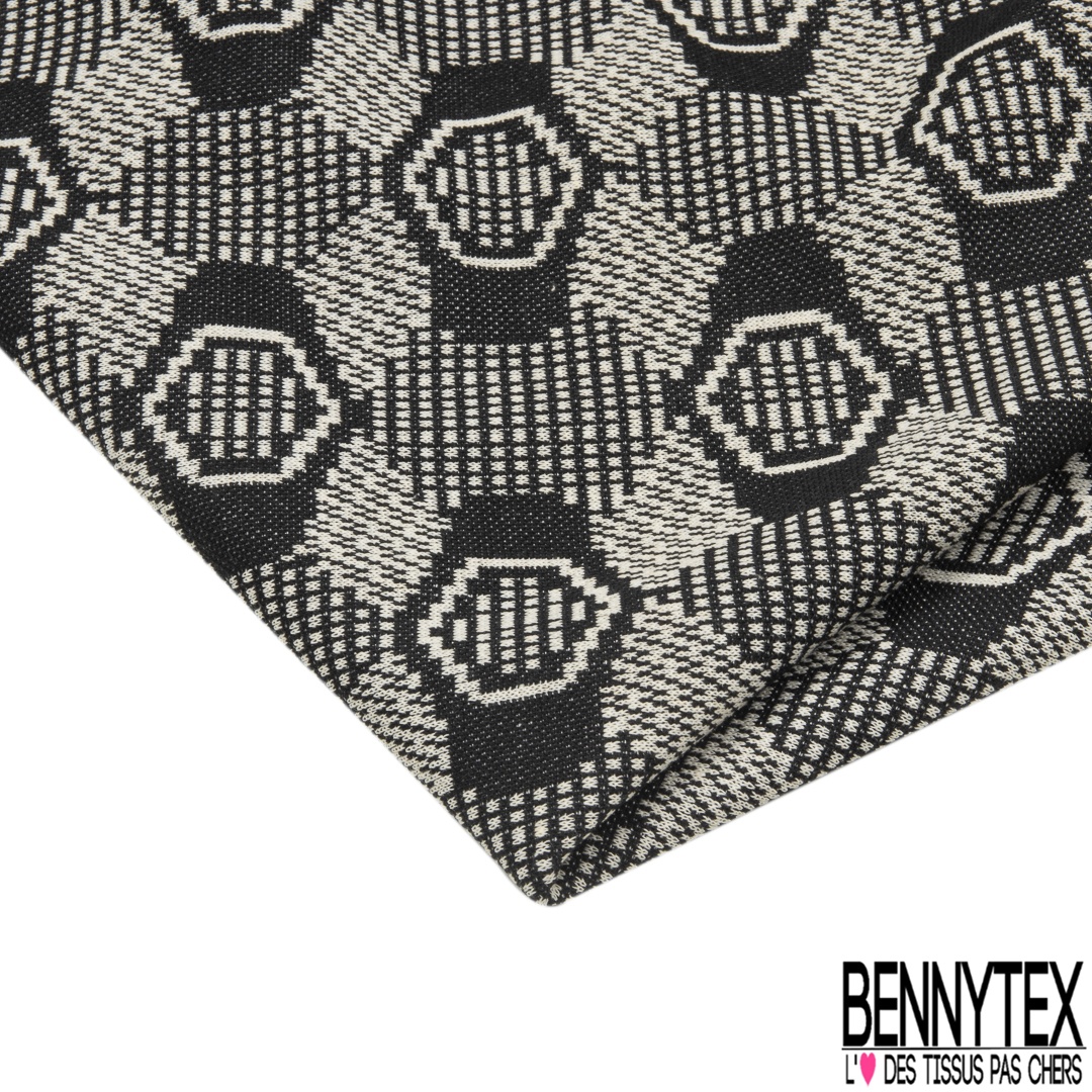Coupon 3m Maille Jacquard Motif Style Montre Fantaisie Noir Et Ecru Bennytex Vente De Tissus Pas Cher Au Metre