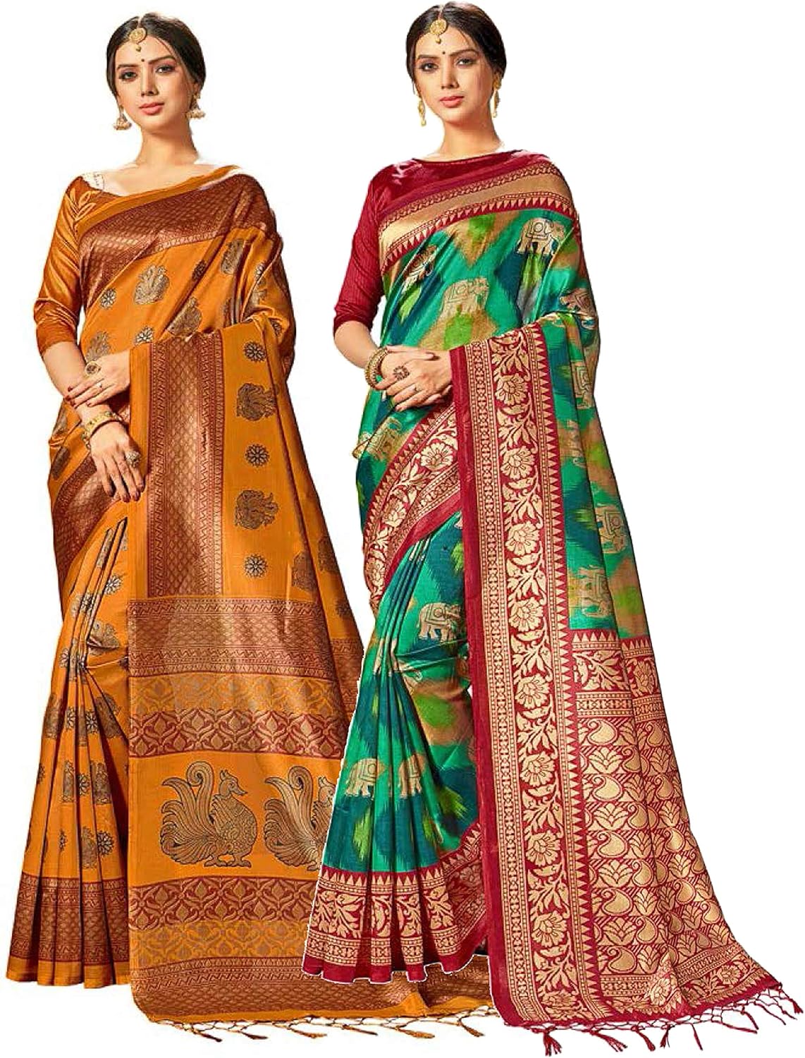 Amazon Com Pack Of Two Sarees For Women Mysore Art Silk Printed Indian Wedding Saree Diwali Gift Sari Clothing