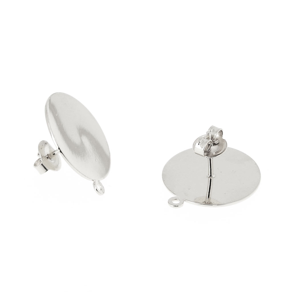 Clous D Oreilles Disque 18 Mm Pour La Creation De Bijoux Fantaisie Placage Argent Fin X2 Perles Co