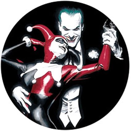 Amazon Com The Joker With Harley Quinn Mad Love Dc Comics Pinback Button 1 25 Clothing