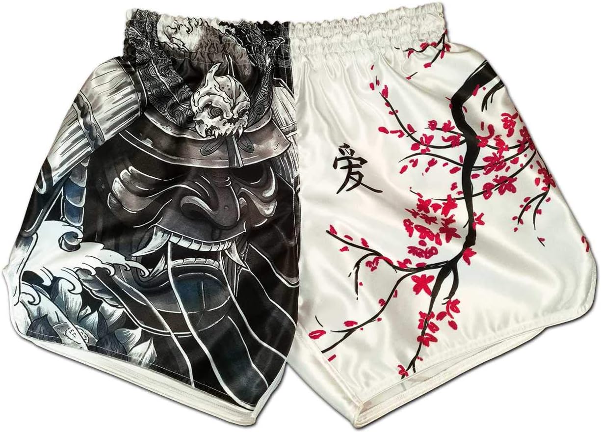 Amazon Com Men S Fight Shorts Cherry Blossom Samurai Muay Thai Kickboxing Boxing Trunks Clothing