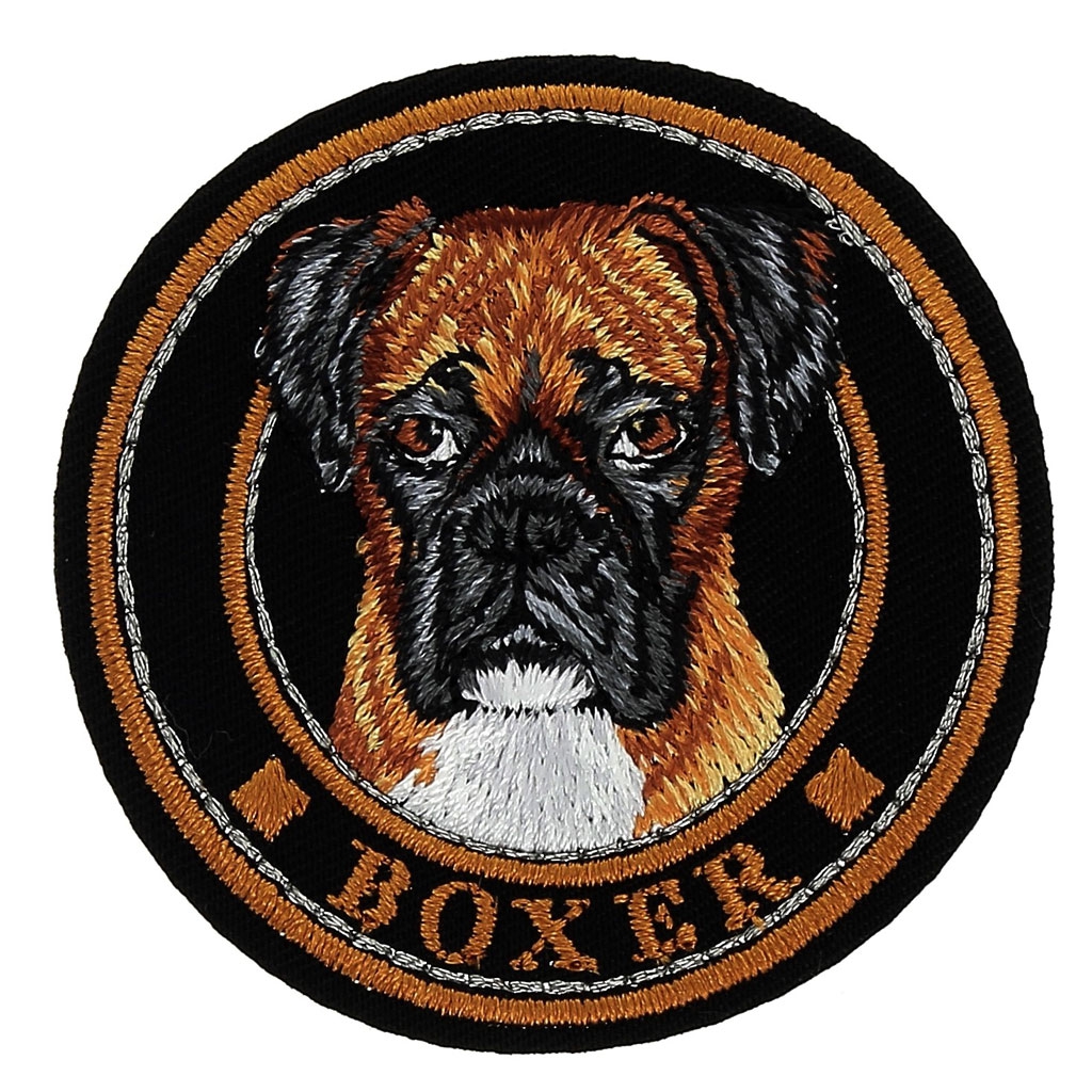 Ecusson Thermocollant Chien Boxer 59 Mm Noir Marron X1 Perles Co