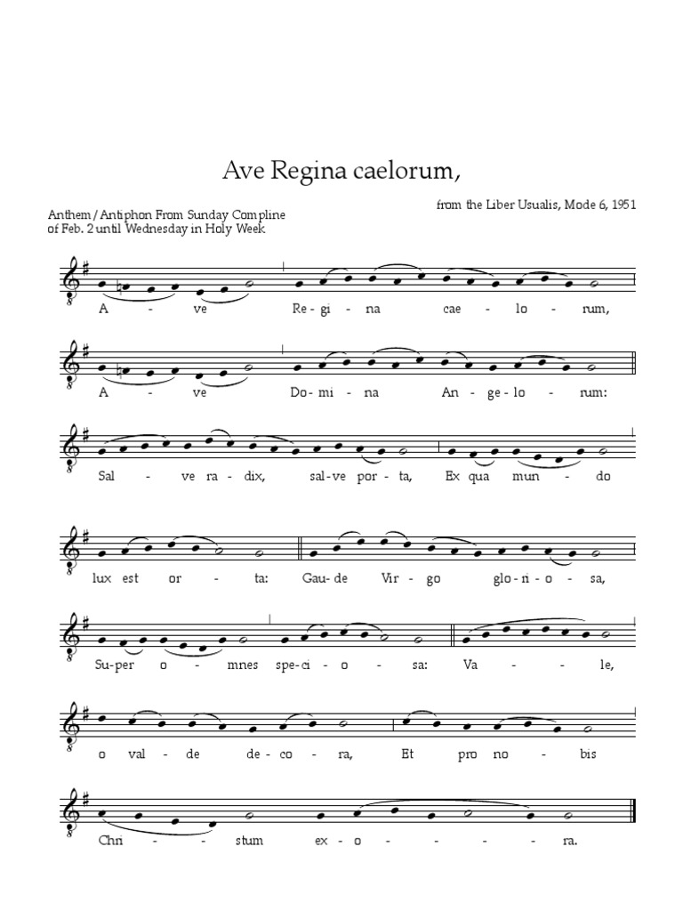Espaces musicaux pour la prière 1, an Album by Enrico Intra Released in 1978 on Auvidis (catalog no AV 4103;. Listen to Weitz Complete Organ Works by Peter Van De Velde on Apple Music Stream songs including "Fanfare and gothic march", "Two Pieces for the Organ based on Plainchant Motives I Ave Regina" and more. Salve Regina Salve, Regína, mater misericórdiae vita, dulcédo et spes nostra, salve Ad te clamámus, éxules fílii Evae Ad te suspirámus, geméntes et flentes in hac lacrimárum valle Eia ergo, advocáta nostra, illos tuos misericórdes óculos ad nos convérte Et Jesum, benedíctum frucum ventris tui, nobis post hoc exsílium osténde.