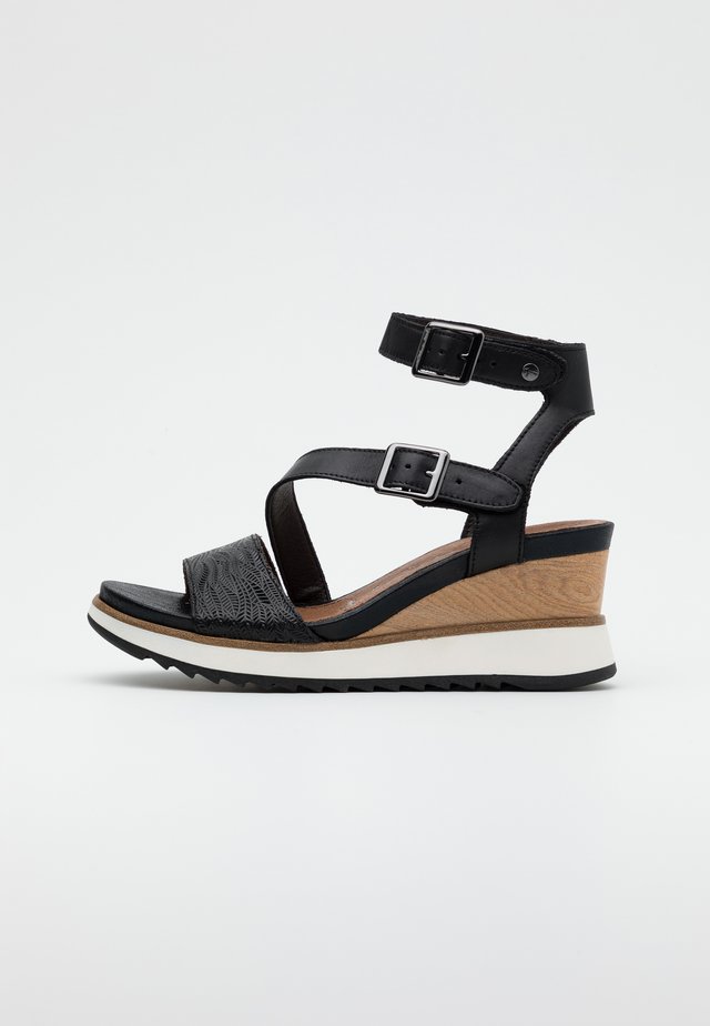 Sandale Pour Femmes En Cuir Noir Avec Courroie Plateforme Et Talon Compense 12