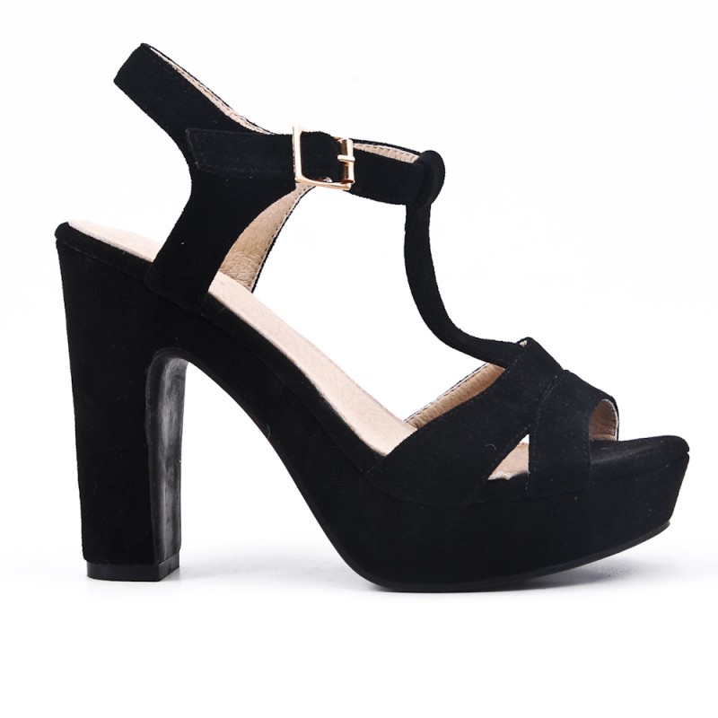 Sandale Compensee Noire En Simili Daim