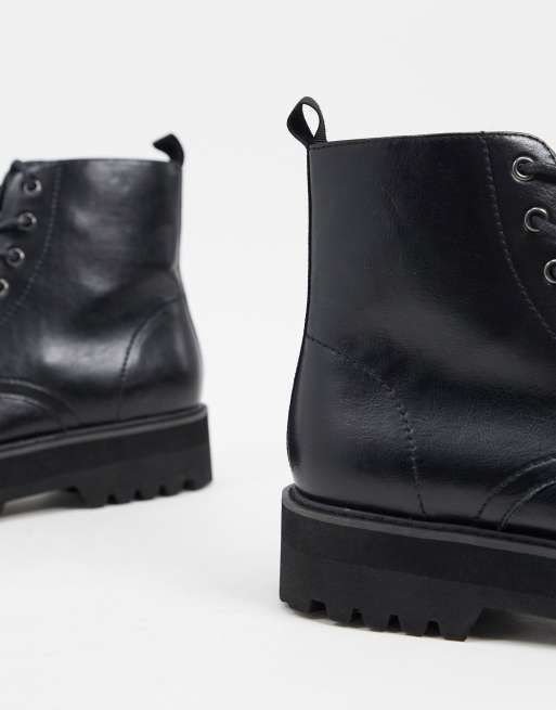 Asos Design Bottes A Lacets Imitation Cuir Avec Semelle Chunky Surelevee Noir Asos