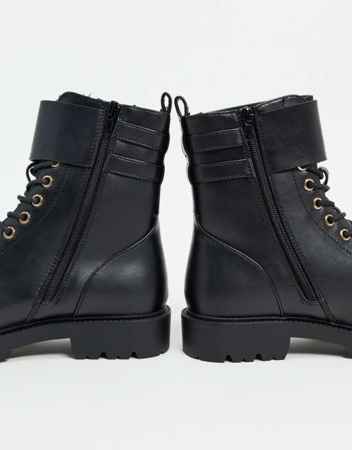 Asos Design Pointure Large Adele Bottes A Lacets Avec Elements Metalliques Noir Asos