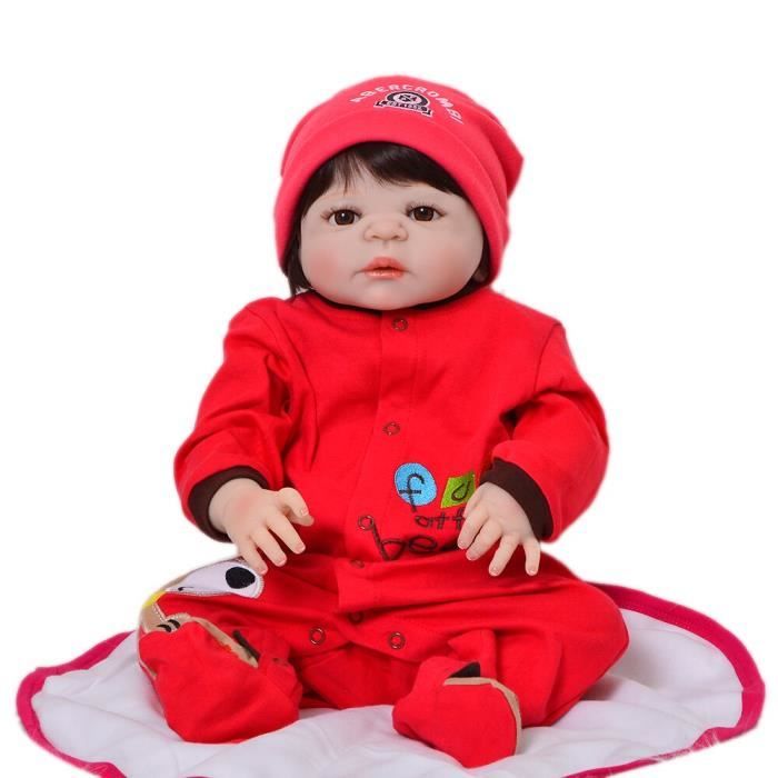 23 57 Cm Realiste Reborn Bebe Poupee Pour Garcon Plein Silicone Vinyle Mode Bebe Jouet Porter Rouge Chien Barboteuse Enfant Cadeau Achat Vente Poupee Cdiscount