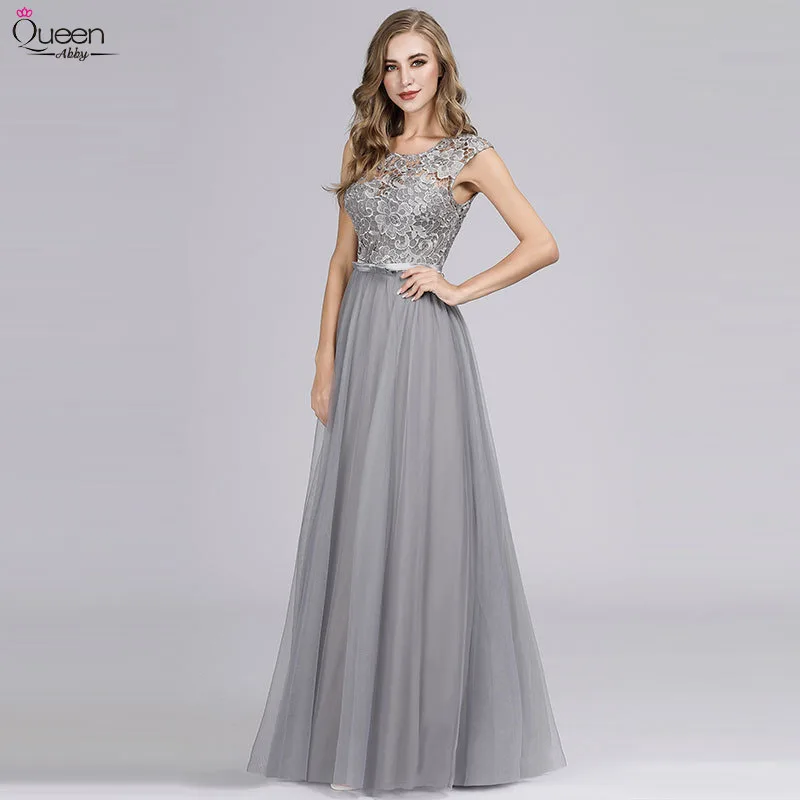Robe De Demoiselle D Honneur En Dentelle Longue Grise Pour Soiree De Mariage Robe De Demoiselle D Honneur Formelle Elegante Coupe Nœud Coupe A Line Col Rond Aliexpress