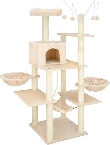 Tectake Arbre A Chat Griffoir Grattoir Geant Avec Hamac Et Tunnel Hauteur 141 Cm Diverses Couleurs Au Choix Beige No Amazon Fr Animalerie