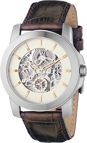 Montre Homme Fossil Automatique Me3155 Analogique Cadran En Acier Inoxydable Argent Bracelet En Cuir M Montre En Cuir Marron Montre Cuir Montre Squelette