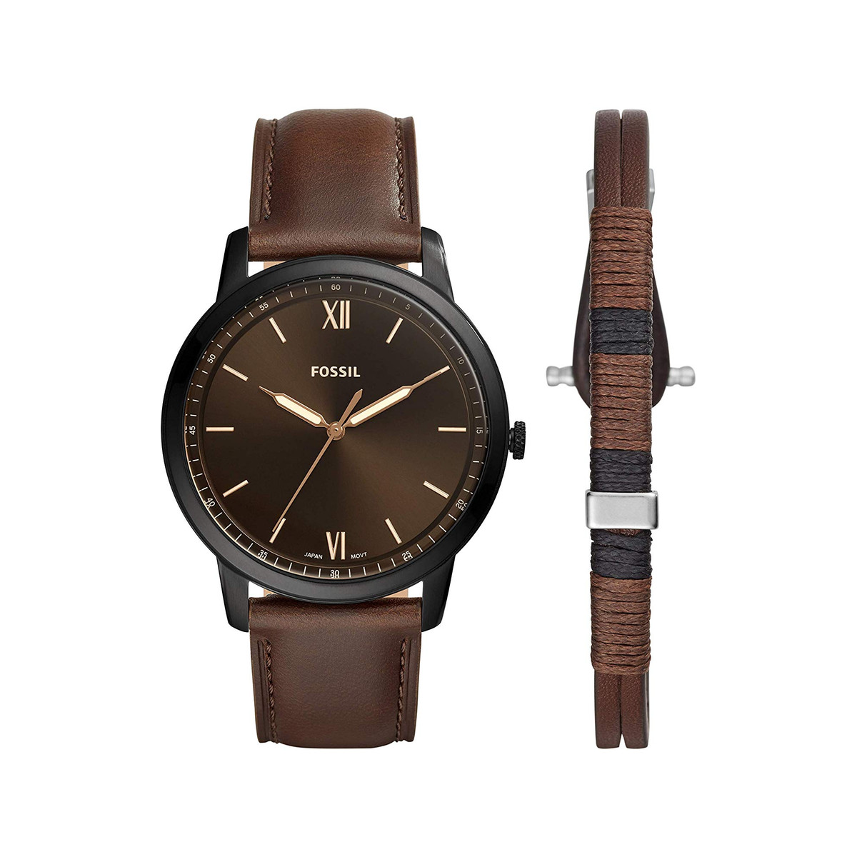 Coffret Fossil The Minimalist Ec 1 Fs5557set Dateur Bracelet Cuir Marron Boitier Acier Gris Homme Fossil Montres Montre Homme