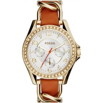 Montre Femme Fossil Riley Es3723 Bracelet En Cuir Marron Et Acier Torsade Doree Montre A Quartz Achat Prix Fnac