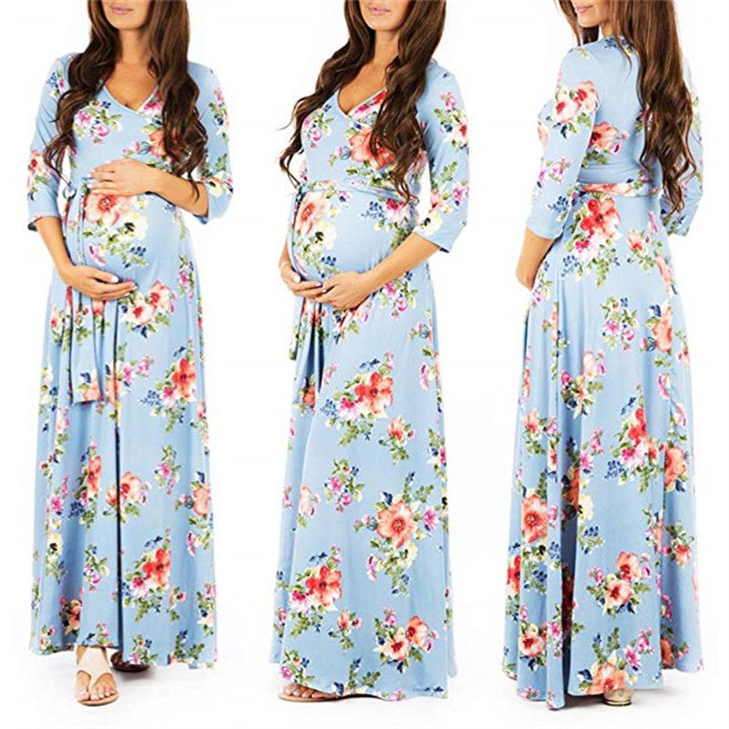 Robe Femme Enceinte Women Sashes Sexy V Neck 3 4 Sleeve Flower Print Wrap Maxi Dress Pregnant Women Dress Casual Long White Summer Dresses Cute Dresses Women From Prettyfaces 22 64 Dhgate Com