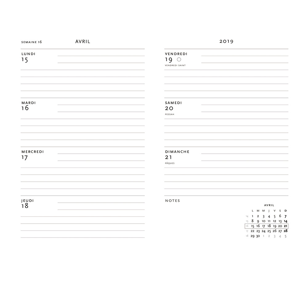 21 Agenda Semainier A5 Planificateur Hebdomadaire Et Mensuel 1 Semaine Sur 2 Pages Weekly Planner Scolaire Journalier Organiseur Calendrier 12 Mois Alpaga (French Edition) Papeterie de la Life on Amazoncom *FREE* shipping on qualifying offers 21 Agenda Semainier A5 Planificateur Hebdomadaire Et Mensuel 1 Semaine Sur 2 Pages Weekly Planner Scolaire Journalier. Ils permettent une plus grande personnalisation et ont l'avantage. Agenda de format moyenne pour l’année 21, en néerlandais, français et anglais, avec une couverture souple noire en matière synthétique Chaque semaine est répartie sur 2 pages L’agenda possède 10 spirales en plastique qui permettent aux pages de s’ouvrir correctement et cellesci ont aussi coins que l’on peut détacher.