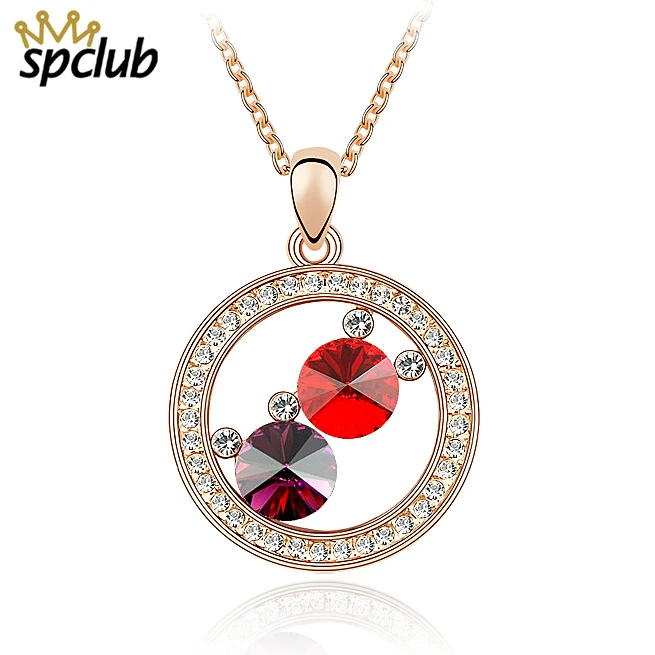 Statement Necklace Women Rose Gold Color Chain Round Pendant Necklace For Women Crystals From Swarovski Collier Femme Pendant Necklaces Aliexpress