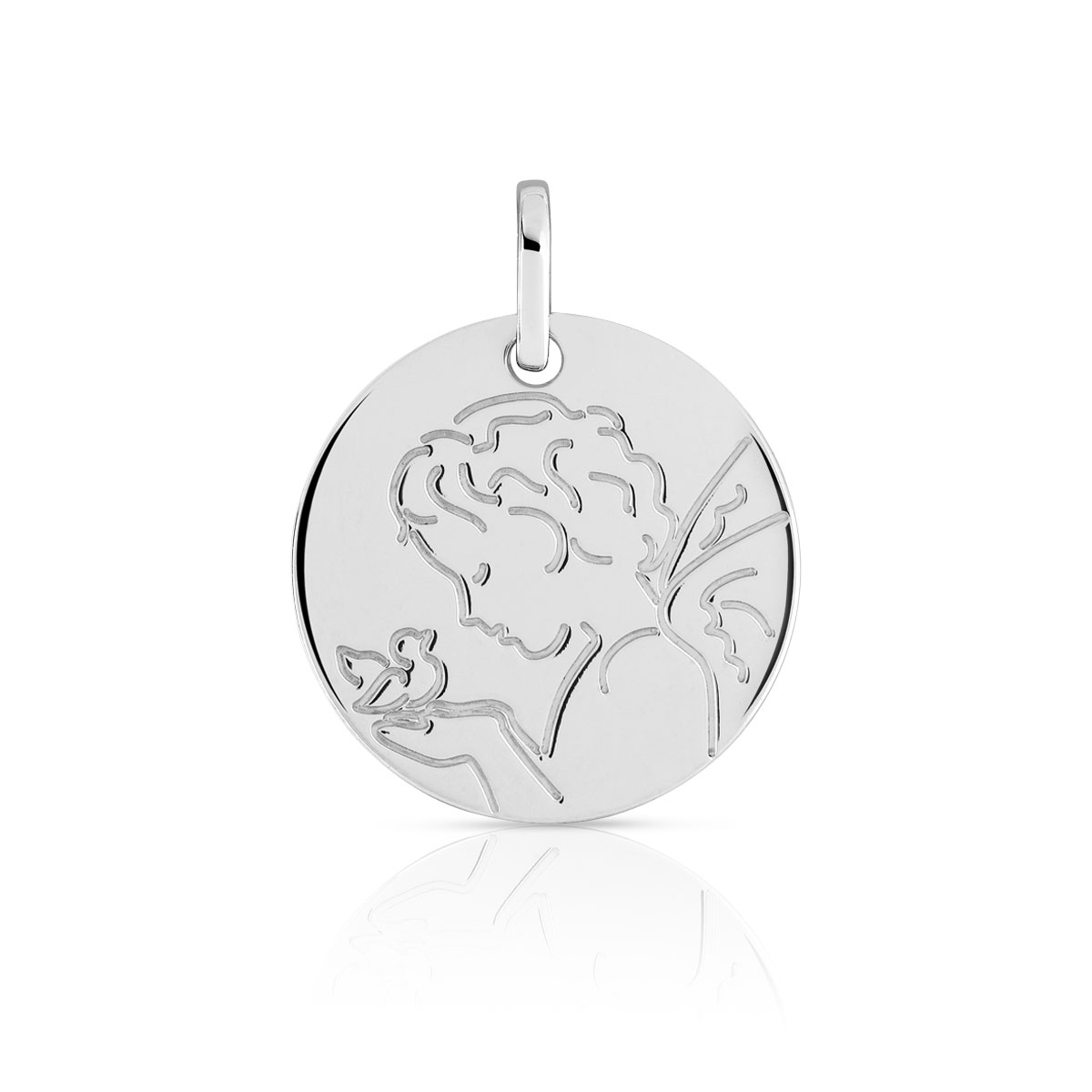 Medaille Medaille Ange A La Colombe Or Blanc 18 Carats Sanctis
