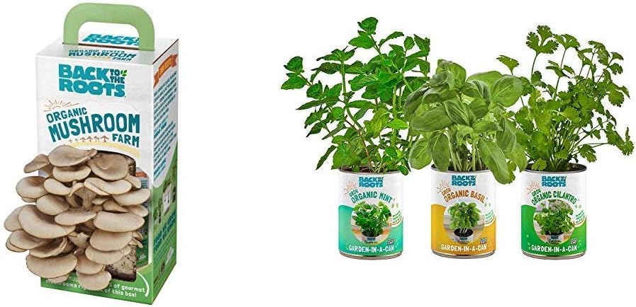 Amazon Com Back To The Roots Organic Mushroom Growing Kit Garden In A Can Kitchen Herb Variety 3 Pack Basil Cilantro Mint Garden Outdoor