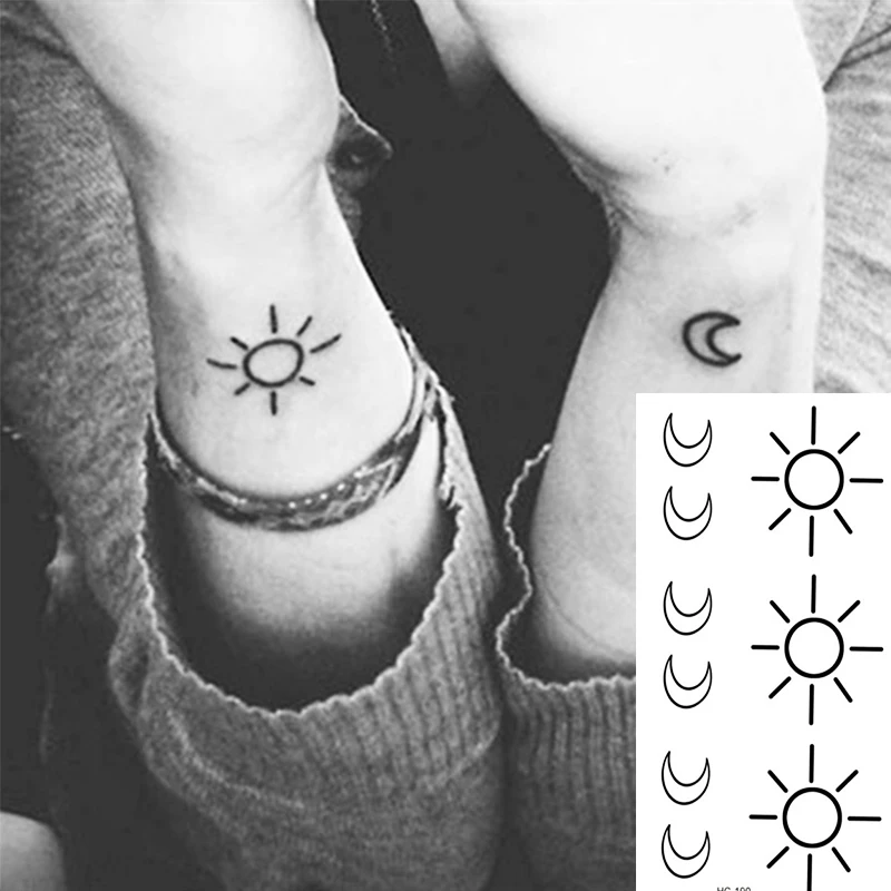Water Transfer Tattoo Minimalist Small Sun Moon Tattoo Body Art Waterproof Temporary Fake Tattoo For Man Woman Kid 10 5 6cm Temporary Tattoos Aliexpress