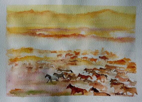 Aquarelle Une Horde De Chevaux Sauvages Etsy