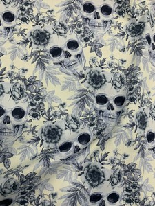 Serge 100 Coton Imprime Tete De Mort Carolina Noir