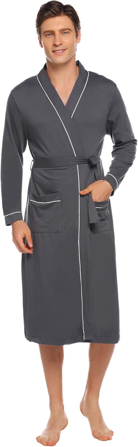 Aibrou Peignoir Femme Hommes Robe De Chambre Coton Kimono Avec Poches Ceinture Soild Hiver Automne Pour Lhotel Spa Sauna Patchwork De Nuit Spa Robes Cuisine Maison Homme