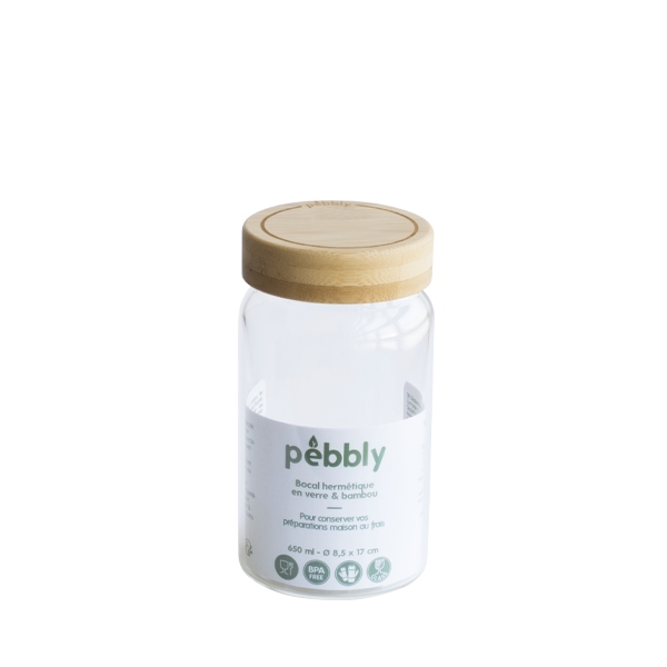 Bocal En Verre Avec Couvercle En Bambou 650 Ml Pebbly Mathon Fr