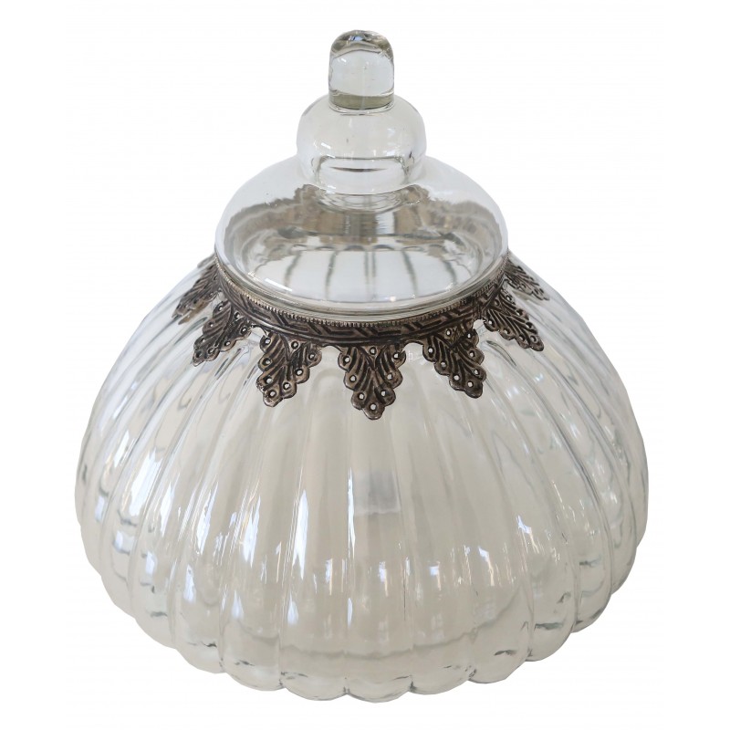 Bocal En Verre Decor En Relief Avec Couvercle Hermetique