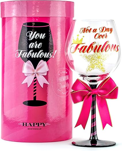 Weinglas Mit Aufschrift Not A Day Over Fabulous Happy Birthday Fur Frauen Einzigartige Geschenkidee Fur Sie Beste Freundin Mutter Schwester Oma Tante Cousine Weibliche Kollegin Lehrer Chef Amazon De Kuche Haushalt