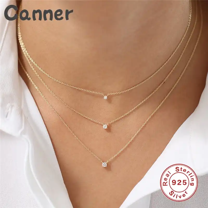Collier Fin En Argent 925 Tendance Pour Femme Avec Oxydes De Zirconium