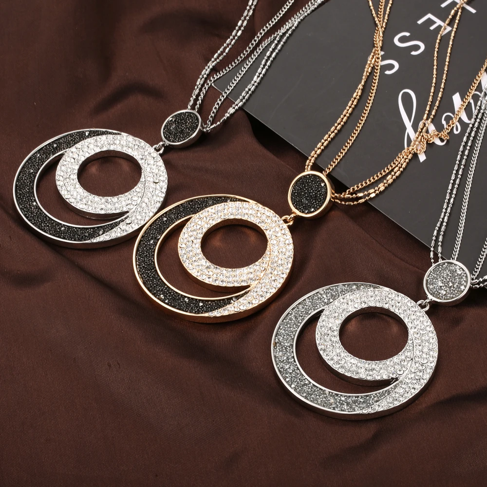Grand Cercle Pendentif Vintage Colliers Pour Femmes Argent Plaque Rond Noir Blanc Cristal Colliers Avec Longue Chaine En Couches Bijoux Aliexpress