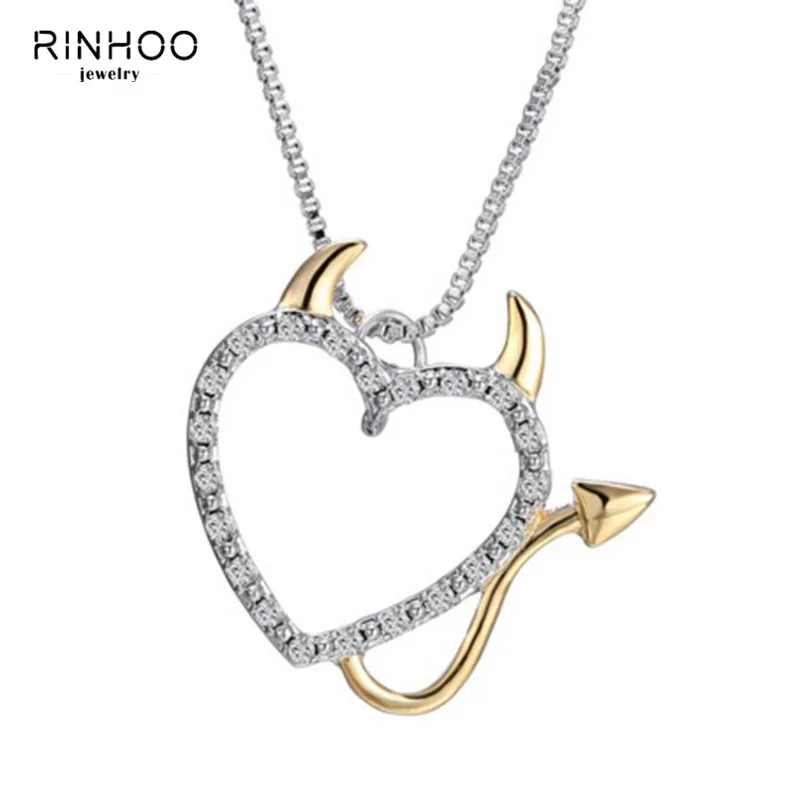 Or Argent Plaque Amour Coeur Accent Diable Coeur Pendentif Colliers Bijoux Pour Femmes Ete Decoration Avec Des Chaines De Boite Aliexpress