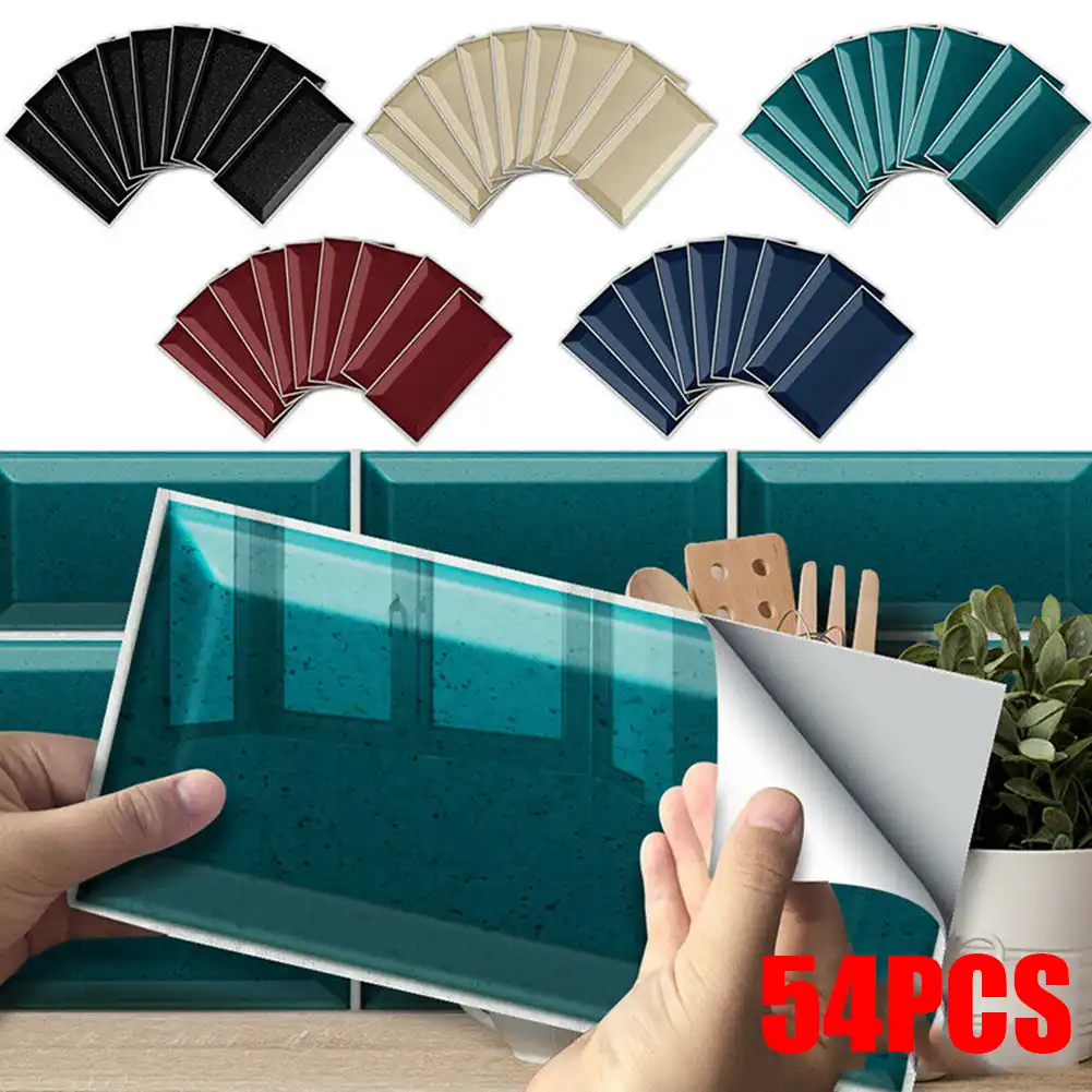 54pc Cuisine Carrelage Autocollants Salle De Bains Mosaique Autocollant Adhesif Decoration Murale Revetement Mural Pour Enfants Salon Bricolage Fond Aliexpress