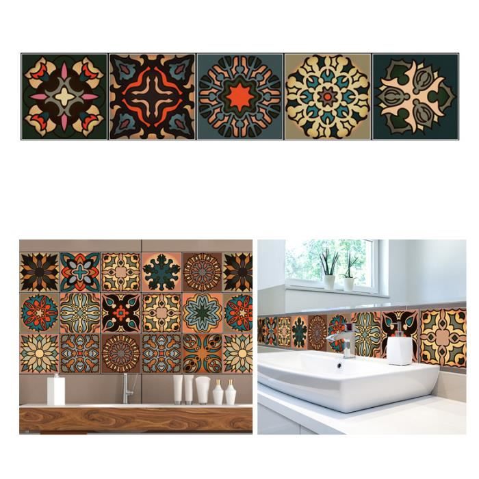 10x10 Cm 9 Pieces Autocollants Muraux Pour Carreaux De Ciment I Revetement Mural Pour Carrelage Salle De Bain Et Credence Cuisine I Design Afrique Mosaique Sticker Carrelage Adhesif Cuisine Maison Stickers