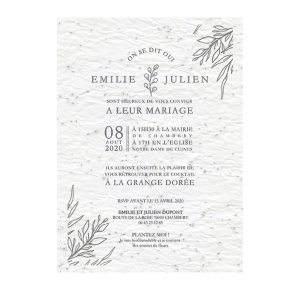 Faire Part Mariage Ecologique Papier Ensemence Coquillage