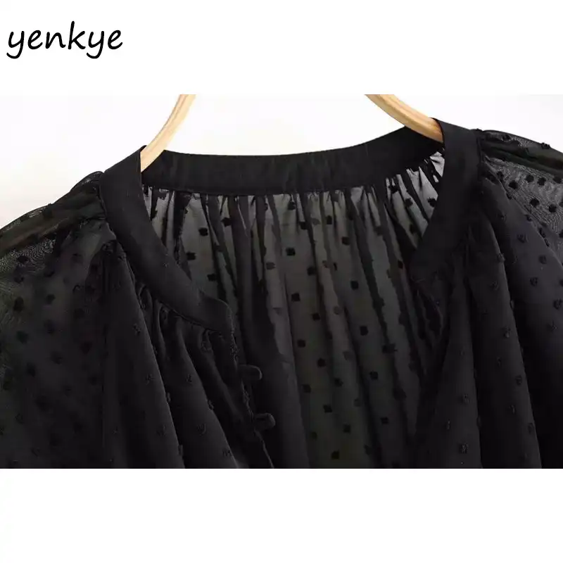 19 Femmes Vintage Pointille Noir Voile Blouse Chemise Femme A Manches Longues Col En V Sexy Semi Transparent Grande Taille Top En Mousseline zz9452 Aliexpress