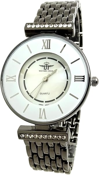 Jolie Montre Femme Ronde Blanc Argent Michael Fine Soiree Bijoux Strass Ice Amazon Fr Montres