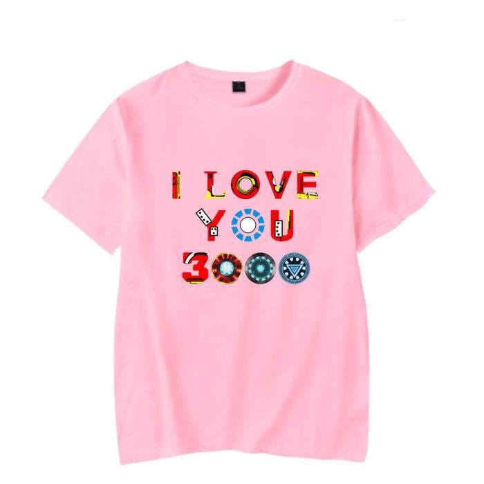 T Shirt Homme D Ete Tee Shirt Femme Tshirt Manches Courtes I Love You 3000 Impression Decontracte Tee Shirt Homme Et Femme Rose Achat Vente T Shirt Cdiscount