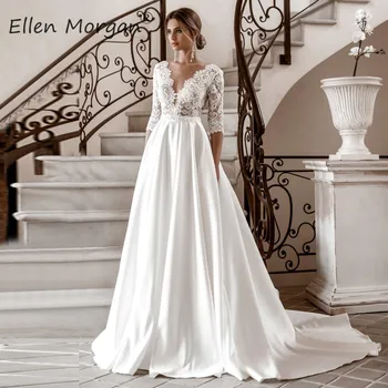 Boheme Ete Plage Satin Robes De Mariee A Ligne Avec Manches Dentelle Col En V Court Train Sexy Simple Robes De Mariee Pour Les Femmes Leather Bag