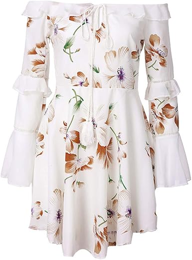 Zeeliy Ete Robes Boheme Volants De Dentelle Epaules Denudees Femme Robes Plisse Manches Longues Col Rond Au Genou Robe Vintage De Plage Amazon Fr Vetements Et Accessoires