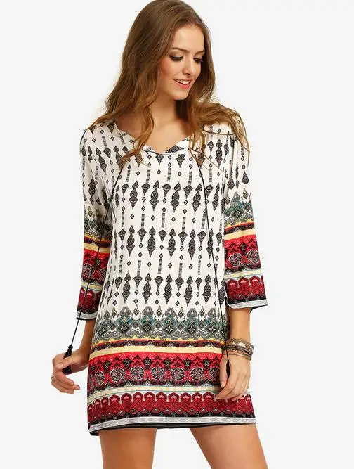Robe Boheme Col En V Manches Courtes Imprime Floral A Lacets Robe D Ete Milanoo Com