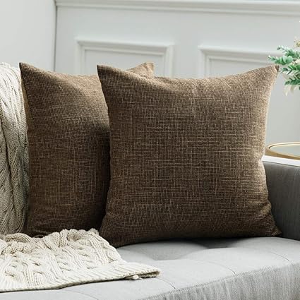 Miulee Lot De 2 Housses De Coussin Decoratives Carrees En Lin Style Rustique Housses De Coussin