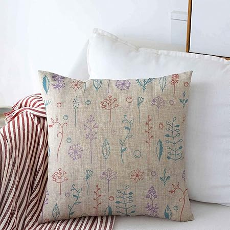 Kris D Coussin Coussin Couvre Petale Bloom Herbes Fleurs Main Nature Fleur Botanique Botanique Bouquet Branche Conception Rustique Housse De Coussin Coton Lin 18x18 Pouces Amazon Fr Cuisine Maison